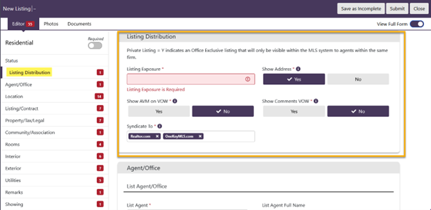 The planned Listing Exposure field has been added to Matrix ADD/EDIT Listing Manager. This new field consolidates Publish to Internet and Private fields while providing greater clarity for seller instructions regarding marketing through a new MLS Only option. A new required Seller Opt-Out Form is available in the OneKey MLS Document Library.